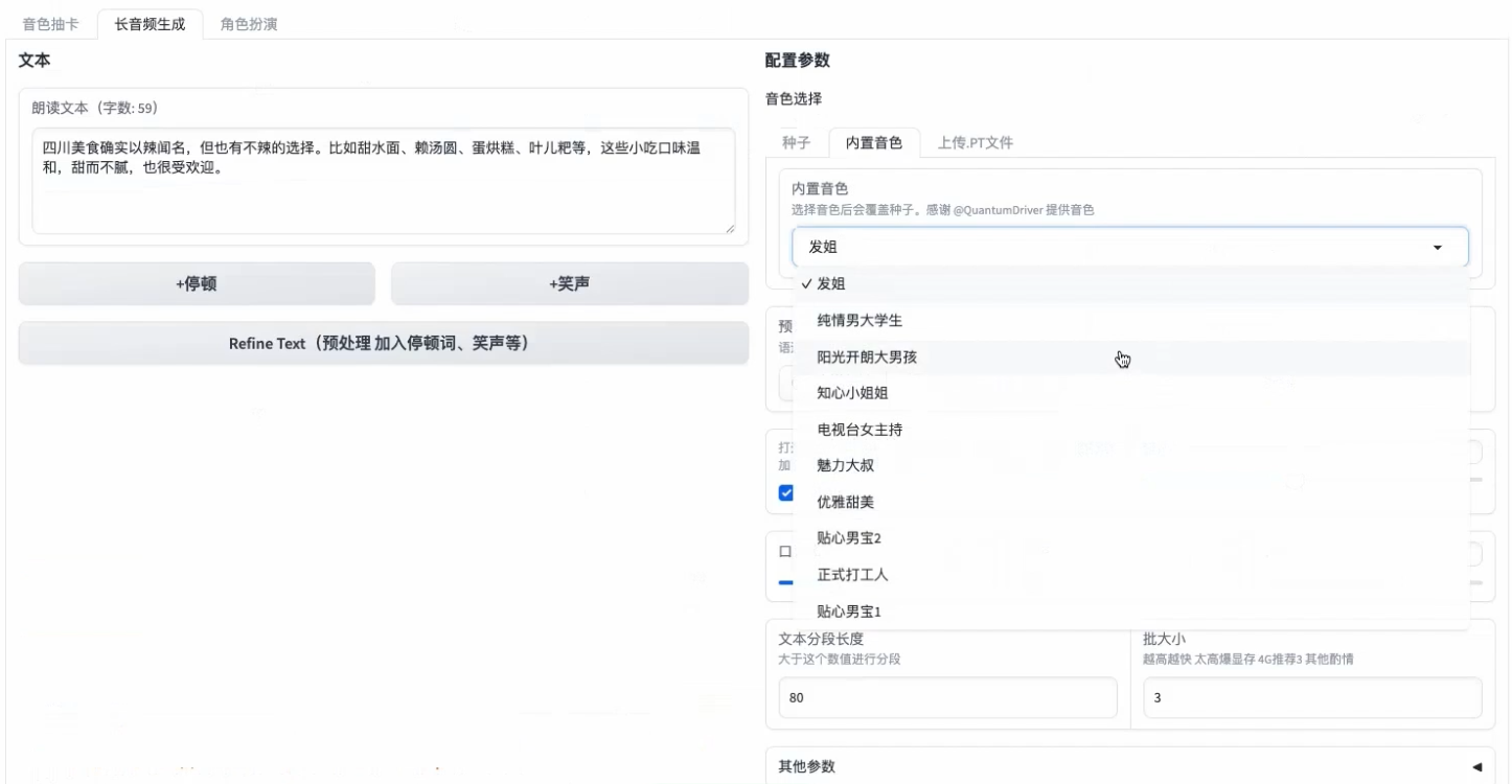 也可以选择内置的音色,生成长音频。