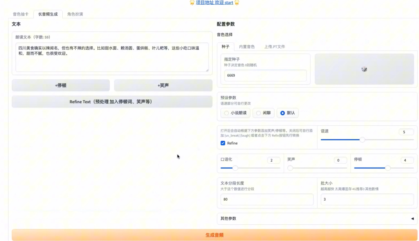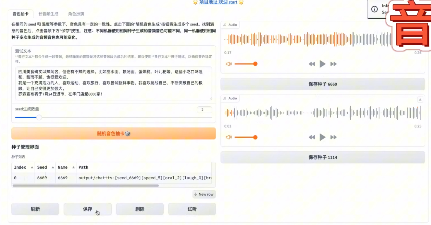我们填写对应的种子音色,生成长音频。