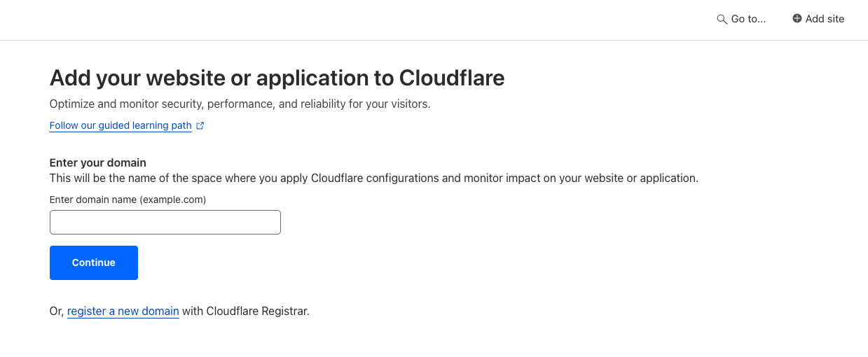 通过点击Add website,添加自己的域名。之后去注册域名的供应商平台修改NS记录为Cloudflare提供的Nameserver,过一会之后,显示Active,即为成功。